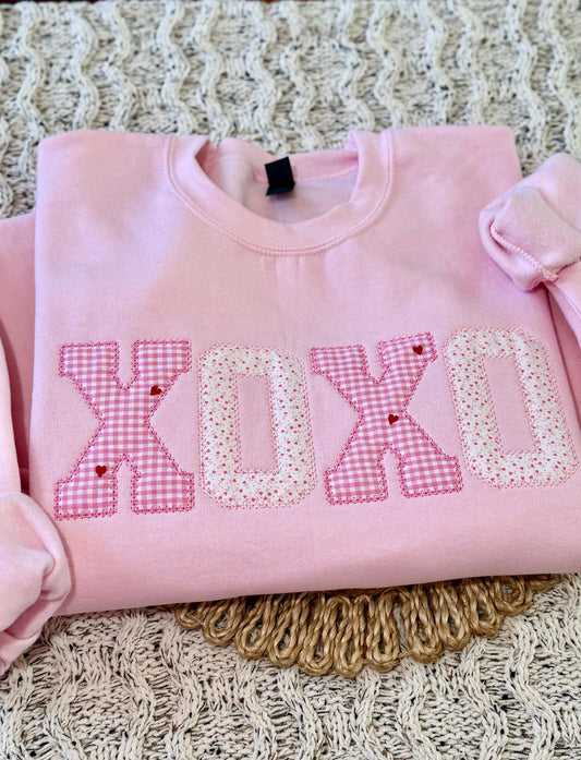XOXO Valentines Day Embroidered Sweatshirt, Pink Hearts Valentines Sweater, Vintage Hearts Crewneck, Valentines Day Pullover Sweater