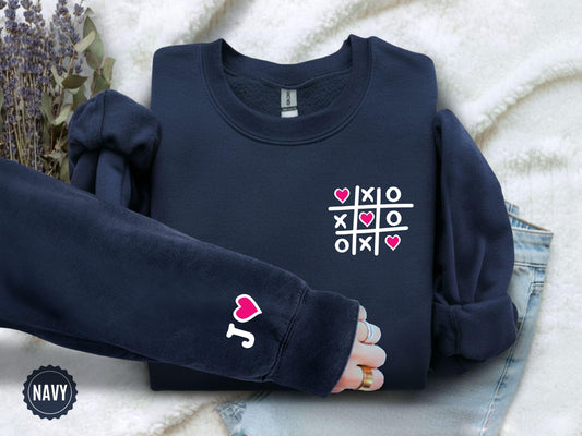 Custom Valentine’s Day XO Sweatshirt, Comfort Colors V Day Heart Long Sleeve, Personalized Simple Valentines