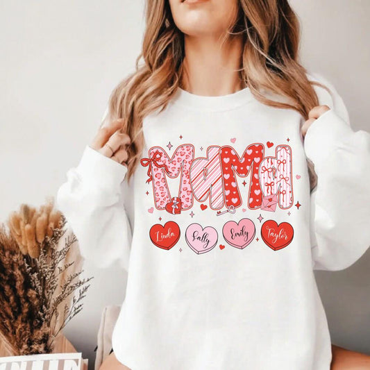 Personalized Mama Valentines Sweatshirt, Mom Shirt with Kids Name, Custom Valentine's Day Tee, Mama Valentine Shirt